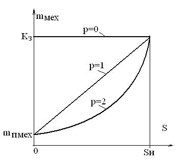 При р=1 момент сопротивления линейно зависит от скольжения. Такие механизмы встречаются редко.