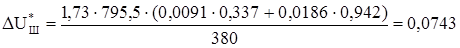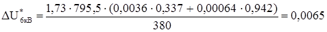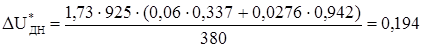 Суммарная относительная потеря напряжения в сети при номинальном пусковом токе (8.4):