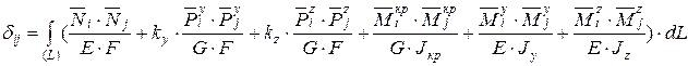 На основании интеграла Мора и выражения (1.5) запишем формулу для определения элементов