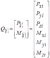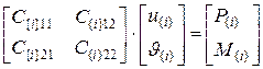 Поместим в нижнем индексе {i} номер системы координат, в которой матрица определяется, тогда уравнение равновесия будет иметь вид
