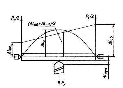 Рис. 2. Схема смещений узлов станка и детали от действия силы РУ