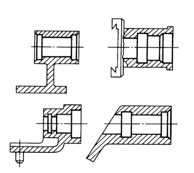 Примерами разработки типовых процессов обработки сочетаний поверхностей могут служить процессы обработки концентрично расположенных наружных и внутренних поверхностей вращения, взаимно перпендикулярных или параллельных поверхностей, обеспечение соосности обрабатываемых отверстий и точности межосевого расстояния между ними и т.д.