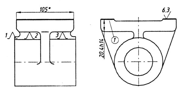 Токарный станок 16К20. Приспособление – типа «угольник». Расточить отверстие 1, фаску 2, подрезать торец 3 под тонкое растачивание и обтачивание (обработка противоположного торца не показана).
