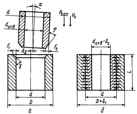 При сборке продольно-прессовых соединений происходит изменение размеров собираемых деталей, что необходимо учитывать, если указанные размеры ограничены допусками. Наружный диаметр D, охватывающий детали увеличивается на величину