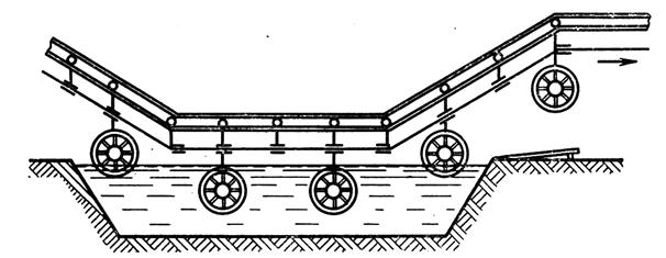 Окраска окунанием применяется для деталей простой формы. Детали погружаются в неподвижную ванную в процессе их перемещения на подвесном конвейере (рис. 5). Окраска струйным обливом применяется для крупногабаритных деталей, имеющих большие поверхности, при этом краска подается в виде сплошной струи из шланга или форсунки. В сельскохозяйственном машиностроении окунанием и струйным обливом выполняется около половины всех окрасочных работ.