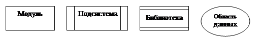 а – модуль; б – подсистема; в – библиотека; г – область данных.