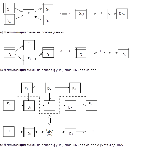 Рис. 2.5. Структурные преобразования схем, ориентированных на потоки данных.