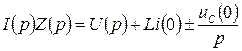 но соотношение между изображением тока и напряжения на ветви требует включения ЭДС, учитывающее начальный ток в индуктивности и начальное напряжение на емкости, в операторную эквивалентную схему.