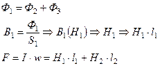 Для магнитной цепи известны поток Ф 3 в воздушном зазоре, геометрические размеры, кривые намагничивания. Определим МДС: