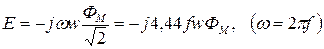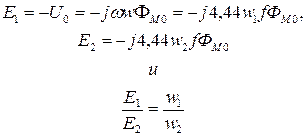 ЭДС, индуцированные синусоидальным потоком Ф в первичной и вторичной обмотках трансформатора