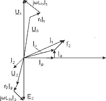 Векторная диаграмма и схема замещения трансформатора с ферромагнитным сердечником