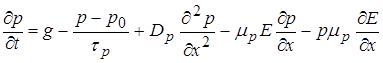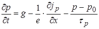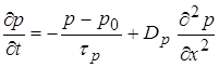 В результате всех процессов в ПП изменение концентраций со временем может быть описано уравнениями
