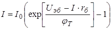 . То есть. не все внешнее напряжение оказывается приложенным к р-п -переходу. Это следует учитывать в формуле ВАХ:
