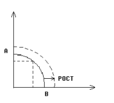 Форма кривой – выпуклая и имеет нисходящий характер. Сдвиг кривой вправо означает экономический рост производства. Реальная экономика находится на подступах к этой кривой.