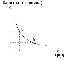 На рисунке видно, что при перемещении по изокванте из точки А в точку В падает потребность в одном и растет необходимость в другом ресурсе.