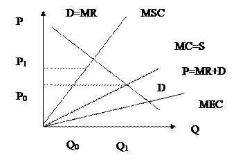 При строительстве очистных сооружений внешние и предельные издержки взрастут, что приведет к росту цен и сокращению выпуска до оптимального уровня, т.е. не дающего отрицательного внешнего эффекта, но реально предприятие работает по-старому.