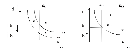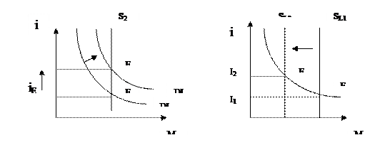 Спрос на деньги – это убывающая функция от ставки процента. Если она увеличивается, то растет спрос на деньги (кривая DL) смещается вправо и размер процентной ставки возрастает. Сокращение предложения денег приведет к аналогичному результату.