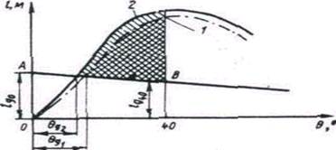 1 — расчет по приближенному способу (ц. т. груз принят в ц. т. грузового помещения); 2 — расчёт по уточненному способу, исходя из действительного положения т. т груза