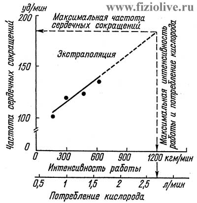 Чаще применяют непрямой метод измерения МПK (рис. Определение максимальной работы и МПK), не требующий сложной аппаратуры. Для обследования высококвалифицированных спортсменов рекомендуется измерять МПK прямым методом.