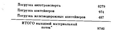 Выходной материальный поток поступает из логистической системы во внешнюю среду. Для оптовой базы его можно определить, сложив материальные потоки, имеющие место при выполнении операций по погрузке различных видов транспортных средств. В нашем примере величина выходного материального потока определится следующим образом, т/год: