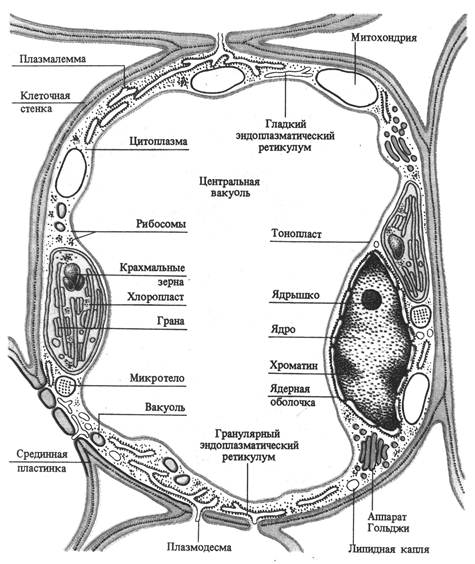 Рис. 2.1. Схема строения клетки мезофилла листа (по В. В. Полевому).