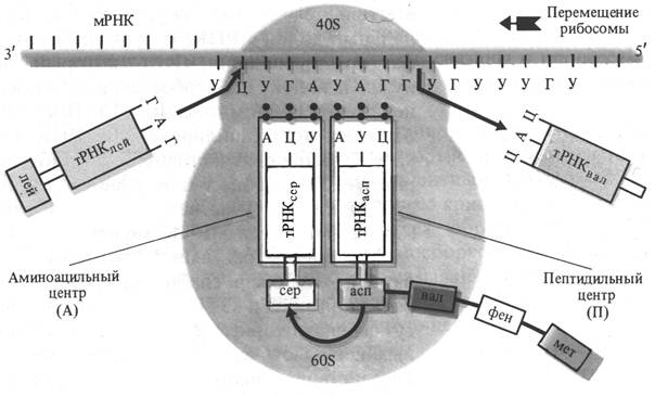 Рис. 2.3. Схема синтеза полипептидной цепи в рибосоме (по В. В. Полевому).