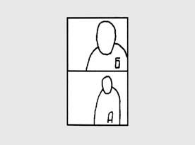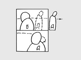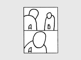 При съемке нескольких беседующих людей нужно помнить, что не всегда люди по внешнему виду отличаются друг от друга. Потому при съемке каждый следующий кадр нужно делать с заметным отличием по крупности от предыдущего. Взгляд человека, направленный всего лишь вскользь от объектива, чуть левее, на экране будет взглядом влево, чуть вправо – взгляд вправо. Направление взгляда остается решающим фактором в монтаже в таких случаях.