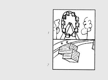 В этих кадрах не совпадают фазы. Зритель обязательно заметит рывок в развитии непрерывного движения. Что делать? Ответ прост, не останавливайте камеру во время съемки до тех пор, пока корзинка пересечет горизонталь и начнет движение в верхней четверти круга. Чтобы с помощью монтажа ускорить ход действия, нужно подрезать часть пути. Но подрезка должна осуществляться в пределах одной из четвертей круга. Тогда сохраниться ощущение непрерывности движения объекта. В нашем случае можно вырезать часть пути, обозначенную жирной стрелкой.