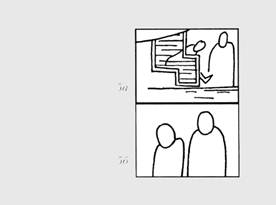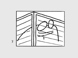 - Финальный кадр сцены. Пара проходит мимо камеры и удаляется. Крупность меняется от общего до 1-го среднего, затем да дальнего. Кадр, вероятно, лучше снимать короткофокусным объективом, чтобы он не казался слишком длинным, а движение в нем выглядело динамичным.