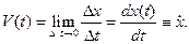 Мгновенная скорость материальной точки в момент времени t, V (t), есть производная координаты x по времени t: