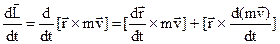 Это уравнение моментов относительно неподвижной точки. Производная по времени момента импульса материальной точки (относительно неподвижной точки) равна моменту силы относительно этой же точки.