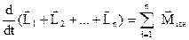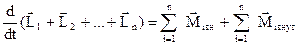 Уравнение моментов (1) можно обобщить на случай произвольной системы материальных точек. Пусть система состоит из n материальных точек вращающихся вокруг центра 0.