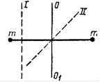 6. Как изменится момент инерции двух материальных точек массами m, если ось ОО 1 перевести: а) в положение I; б) в положение II?