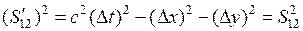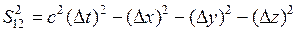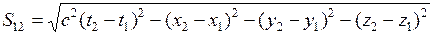 В четырехмерном пространстве Эйнштейна, в котором каждое событие характеризуется четырьмя координатами (x, y, z, t), вводится понятие интервала между событиями: