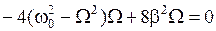 Решение, равное нулю, соответствует максимуму знаменателя. Из остальных двух решений отрицательное должно быть отброшено как не имеющее физического смысла (частота не может быть отрицательной). Таким образом, для резонансной частоты получается одно значение: