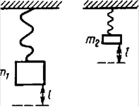 2. На двух пружинах подвешены грузы массами m1 и m2, причем m1 > m2. При подвешивании грузов к свободным пружинам последние получили одинаковые удлинения. У какого груза больше период колебаний и какой из грузов при одинаковых амплитудах облает большей энергией? Массой пружин можно пренебречь.