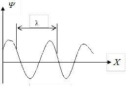 Пусть плоская волна распространяется вдоль оси x. Тогда все точки среды, положения равновесия которых имеют одинаковую координату x (но различные значения координат y и z), колеблются в одинаковой фазе. На рис. 7.2 изображена кривая, которая дает смещение Ψ из положения равновесия точек с различными x в некоторый момент времени.