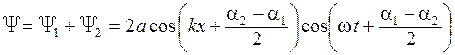 Сложив вместе эти уравнения и преобразовав результат по формуле для суммы косинусов, получим уравнение стоячей волны
