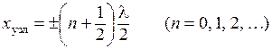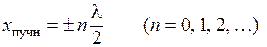 амплитуда колебаний обращается в нуль. Эти точки называются узлами стоячей волны. Точки среды, находящиеся в узлах, колебаний не совершают. Координаты узлов имеют значения
