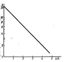 2. Волна распространяется в среде с затуханием. На графике по оси абсцисс отложено расстояние от источника колебаний, причем это расстояние выражено в длинах волн. По оси ординат отложен десятичный логарифм амплитуды. Написать на основании этого графика формулу, представляющую зависимость амплитуды от расстояния.