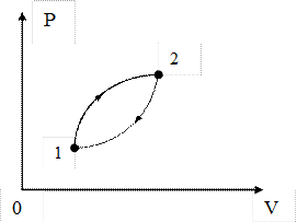 Процесс, при котором система после ряда изменений возвращается в исходное состояние, называется круговым процессом или циклом. Обратимый цикл изображается на координатной плоскости замкнутой кривой (1–2–1).