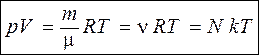 – количество вещества; N – число молекул; R – универсальная газовая постоянная; k – постоянная Больцмана. Это есть уравнение КлапейронаМенделеева для массы m газа. Эти постоянные связаны соотношением
