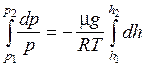 С изменением высоты от h 1 до h 2 давление изменяется от p 1 до p 2, т. е.