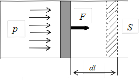 Если газ, расширяясь, передвигает поршень на расстояние dl, то производит над ним работу dA = Fdl = pS dl = pdV (рис. 9.1), т. е.