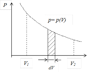 т.е. определяется площадью заштрихованной полоски. Полная работа, совершаемая газом при расширении от объема V 1 до объема V 2определяется площадью, ограниченной осью абсцисс, кривой p (V) и прямыми V 1 и V 2.