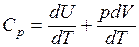 Это есть уравнение Майера. Cp всегда больше CV на величину молярной газовой постоянной. Это объясняется тем, что при нагревании газа при постоянном давлении требуется еще дополнительное количество теплоты на совершение работы расширения газа, так как постоянство давления обеспечивается увеличением объема газа.