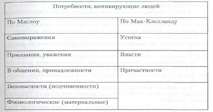 Таблица 6.2 Связь между теориями Маслоу и Мак-Клелланда