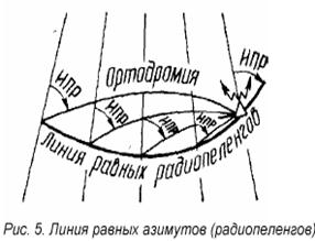 В самолетовождении также используются линии пеленга (радиопеленга, пеленга, азимута), линии равных азимутов.