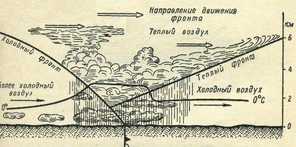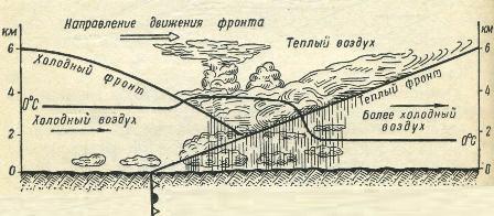 Атмосферный фронт – это раздел между двумя воздушными массами, отличающимися одна от другой физическими свойствами (температура, давление, плотность, влажность, облачность, осадки, направление и скорость ветра). Фронты располагаются по двум направлениям – по горизонту и по вертикали