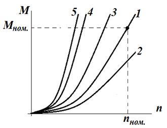 При различных условиях плавания изменяется зависимость момента сопротивления вращению гребного винта (Мв) от частоты вращения винта (n), как показано на рисунке 2.1.